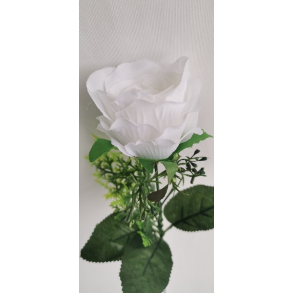 Růže zápich s plastovým asparagusem; v. 30 cm, květ 4*5 cm