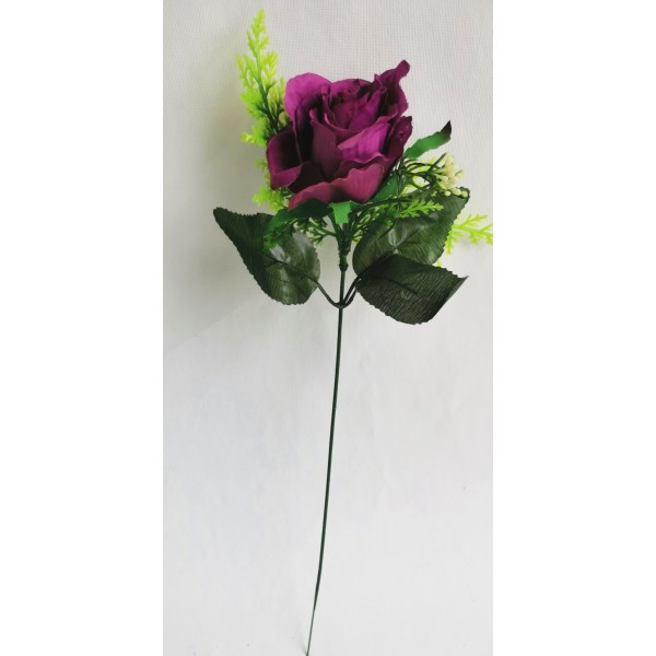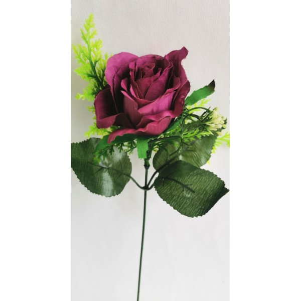 Růže zápich s plastovým asparagusem; v. 30 cm, květ 4*5 cm