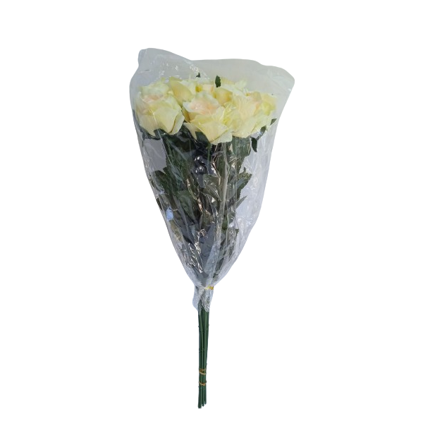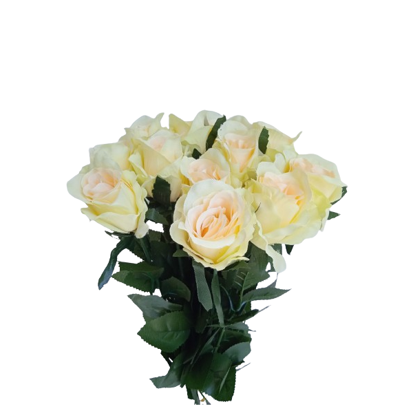 Růže kytice (12ks) krémovo-zelená 65 cm
