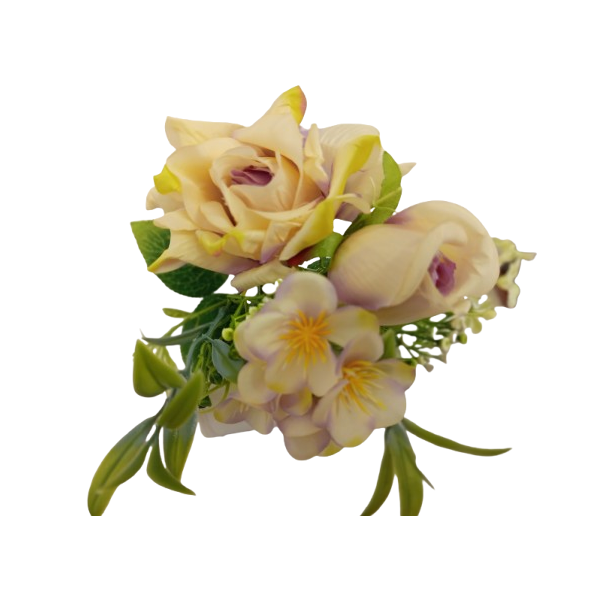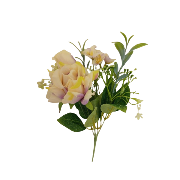 Kytice růže a hortenzie krémovo-fialová 32 cm