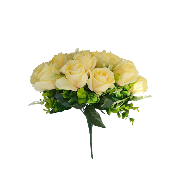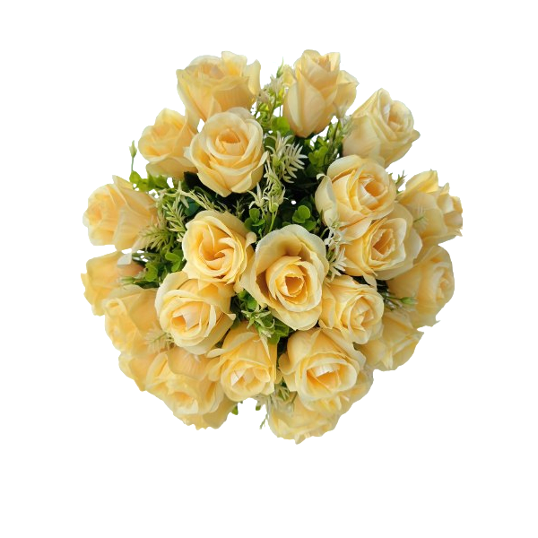 Kytice 24 květů růží s přízdobou, výška 39 cm, květ 5x6 cm, průměr kytice cca 30 cm. Krásná bohatě kvetoucí kytice.