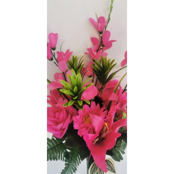 Kytice lilie, růže, gerbera tm. růžová 57 cm