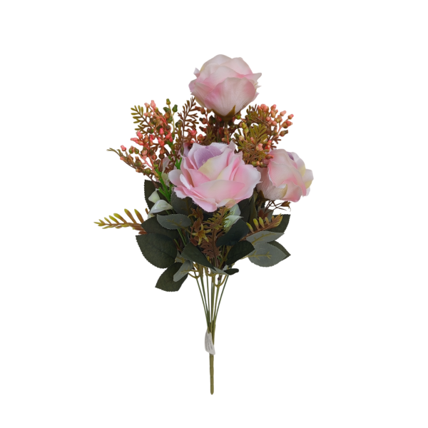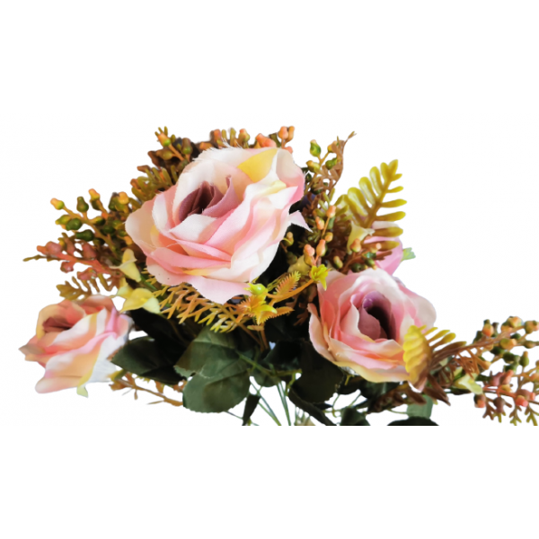 Kytice růže s přízdobou v podzimních tonech, 9 stonků; 4 květy růže; v. 48 cm, květ 8x7 cm. Pěkné