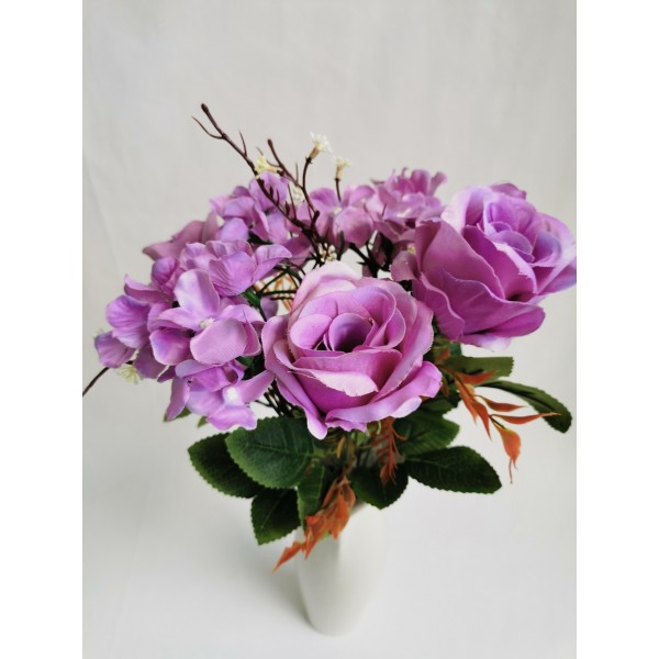 Růže kytice s hortenzií sv. fialová 46 cm