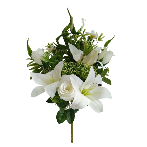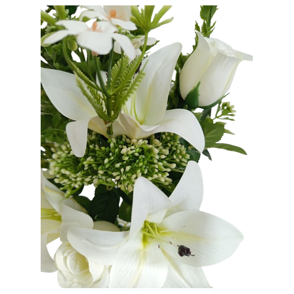 Kytice lilie, růže s přízdobou bílá 47 cm