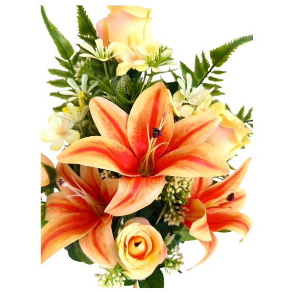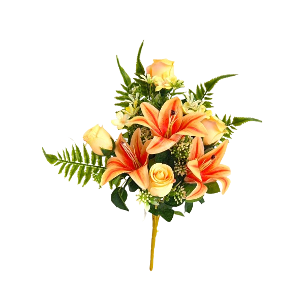 Kytice lilie, růže s přízdobou oranžová 47 cm