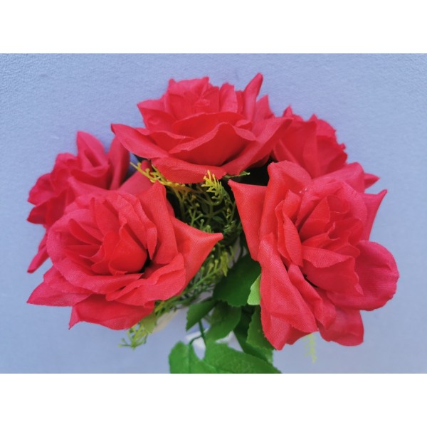 Růže kytička x 5 květů s přízdobou, v. 28 cm; květ 7 cm; posledních pár kusů.