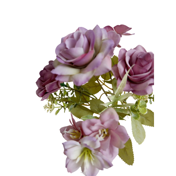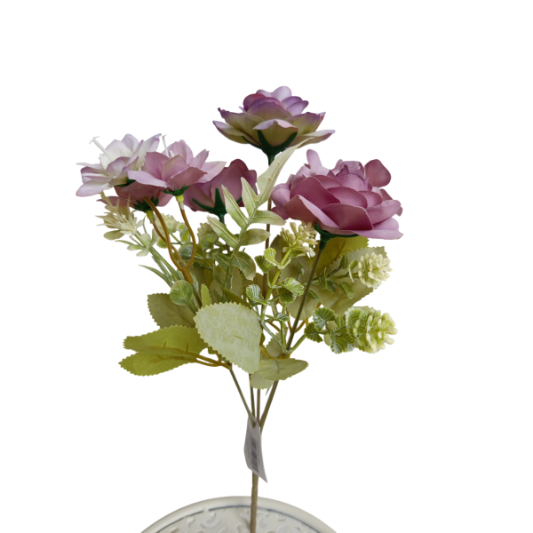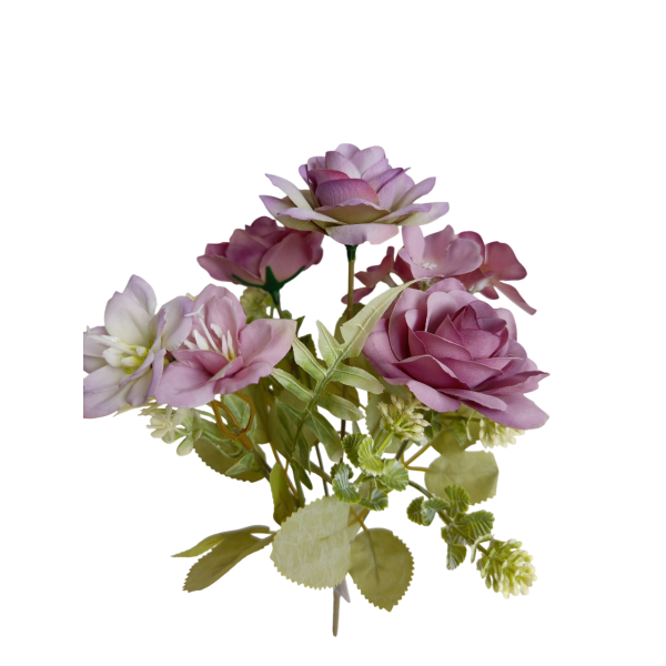 Růže kytička x5 s přízdobou. V. 29 cm, květ 7 cm. Mat. plast a textil. 6 barevných variant v pudrových barvách.
