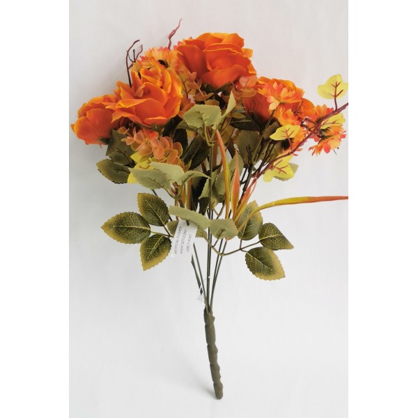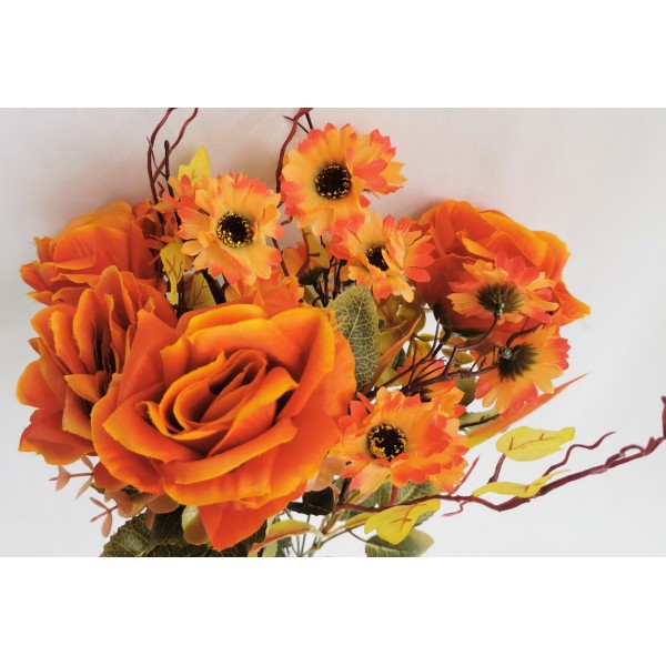 Kytice růže s přízdobou x 7 stonků (4 květy růže a kopretinky v barvě); v. 46 cm; květ růže průměr 10 cm; moc pěkné podzimní barvy.