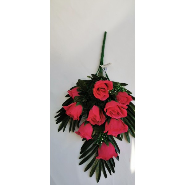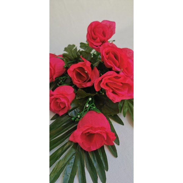 růže kytice smuteční x 9 květů s přízdobou a palmovými listy, délka 50 cm
