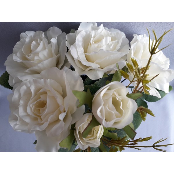 Růže kytice x6, s přízdobou, v. 41 cm, květ průměr 10 cm;