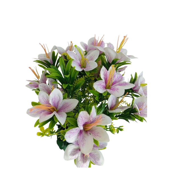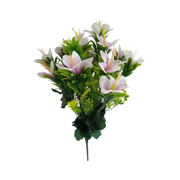 Kytice mini lilií s přízdobou x 18 stonků/květů; v. 45 cm; nové zboží, 4 barvy