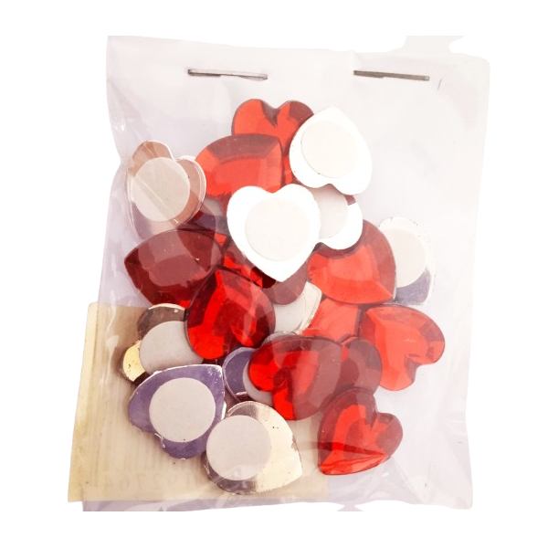 srdce nalepovací plastové, ploškované, červené, 15 mm, 24 ks v sáčku