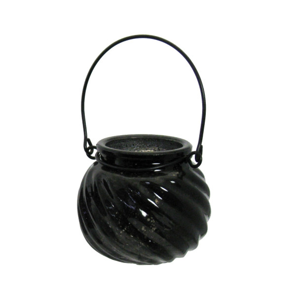 svícínek skleněný s uchem - tm. šedý; Ø 7 cm, v. 6/11 cm