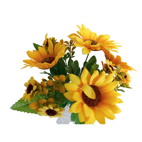 Slunečnice kytička x7, výška 32 cm, květ 10 cm.
