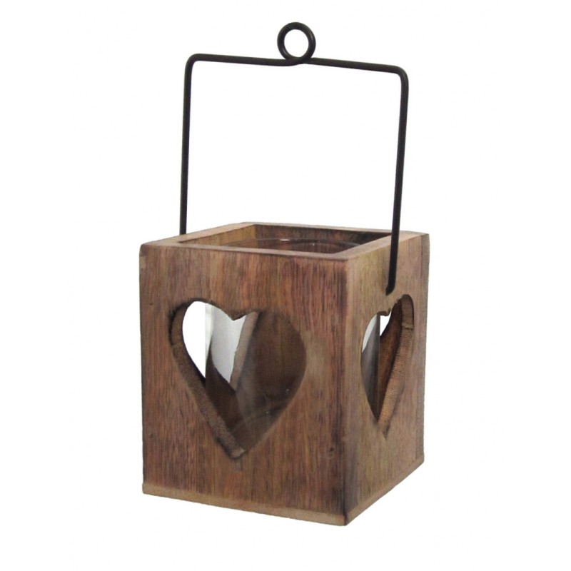 svícen dřevo "srdce"se sklem, na čaj.svíčku