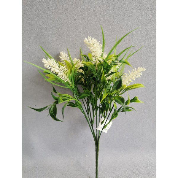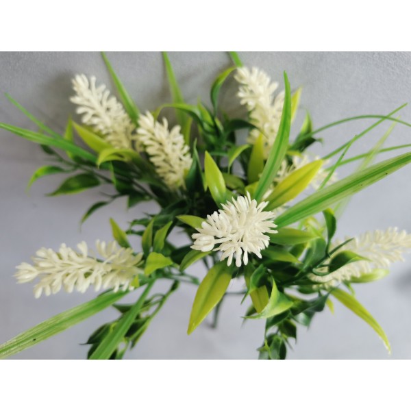 Květoucí tráva plast 38 cm. Dostupné 3 barvy (bílá, fialová)