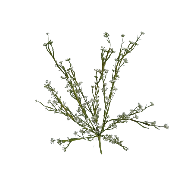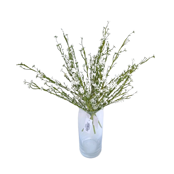 Tráva letní gypsophila. Kvalitně vyrobená umělá květina. Materiál plast, Stonek obtočený papírem. Ruční výroba. V. 46 cm. Poslední fota - foceno v číré váze - 3 ks dohromady.