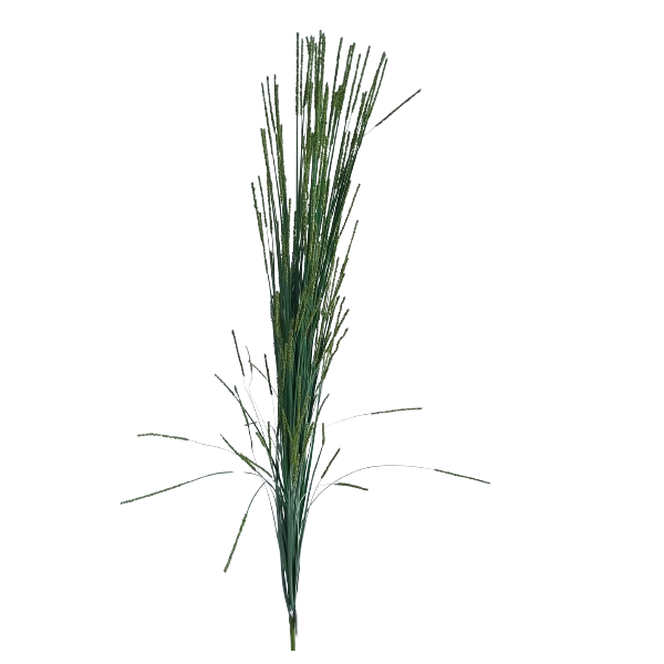 Tráva dekorační 99 cm. Barva tm. zelená, mat.: ztužený textil. Velmi pěkné.