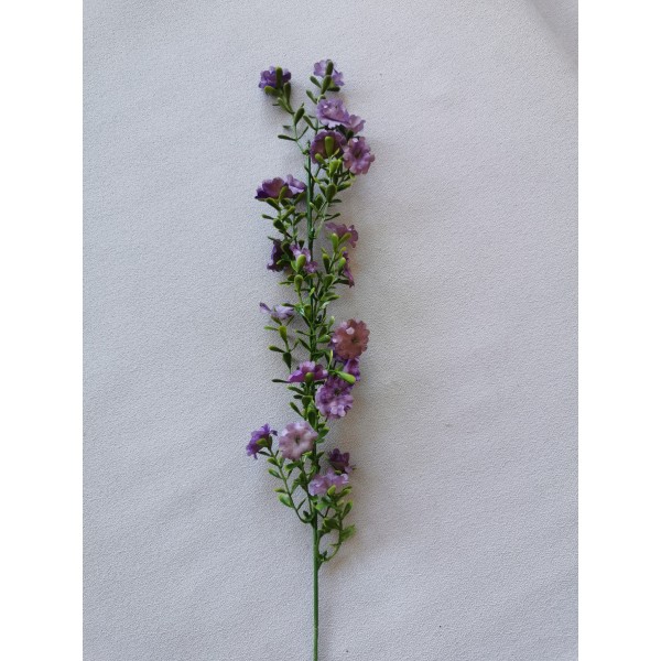 Větvička plastová s květy; větvička a lístky jsou plastové, květy textil. V. 57 cm. Opět naskladněny všechny barvy.