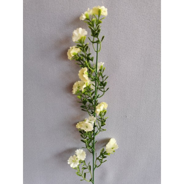 Větvička plastová s květy; větvička a lístky jsou plastové, květy textil. V. 57 cm. Opět naskladněny všechny barvy.