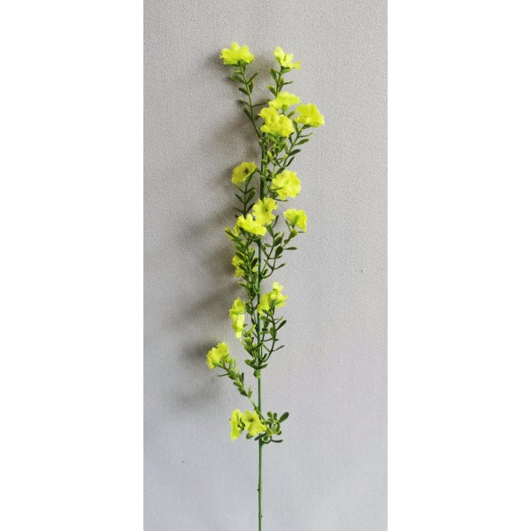 Větvička plastová s květy; větvička a lístky jsou plastové, květy textil. V. 57 cm. Opět naskladněny všechny barvy.