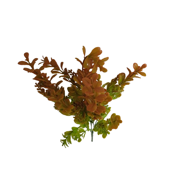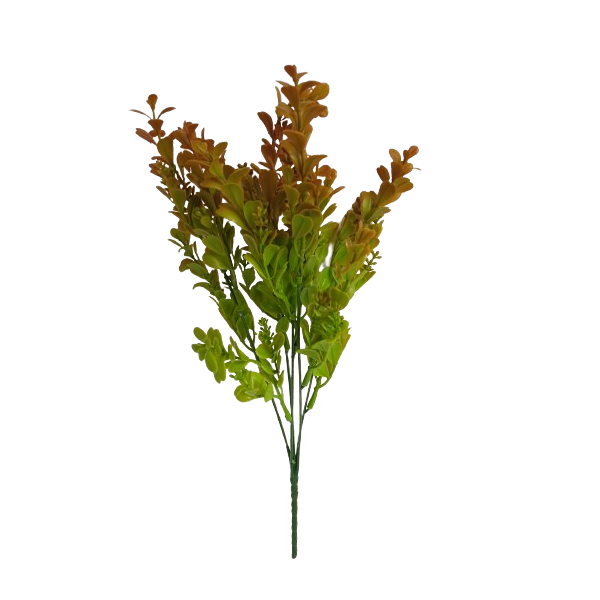 Plastová větvička s lístky x 5 větviček na stonku. V. 40 cm. Materiál plast. Pěkné a pěkné barvy.