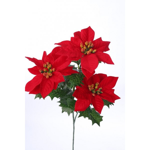 Kytička poisettie x3 květy, v. 55 cm; červená