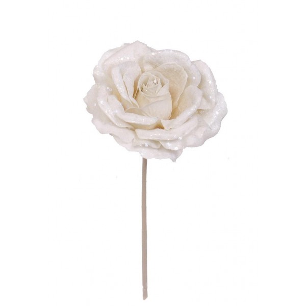 Růže květ se stonkem, s glitrem, barva krém, v. 32 cm, květ 12 cm