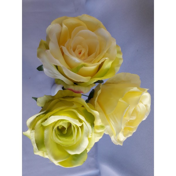 Růže vazbová velká s drátkem(drátek 28 cm), květ - v. 8 cm, šíře 10,5 cm. Barva: světle žlutá. Krásná.