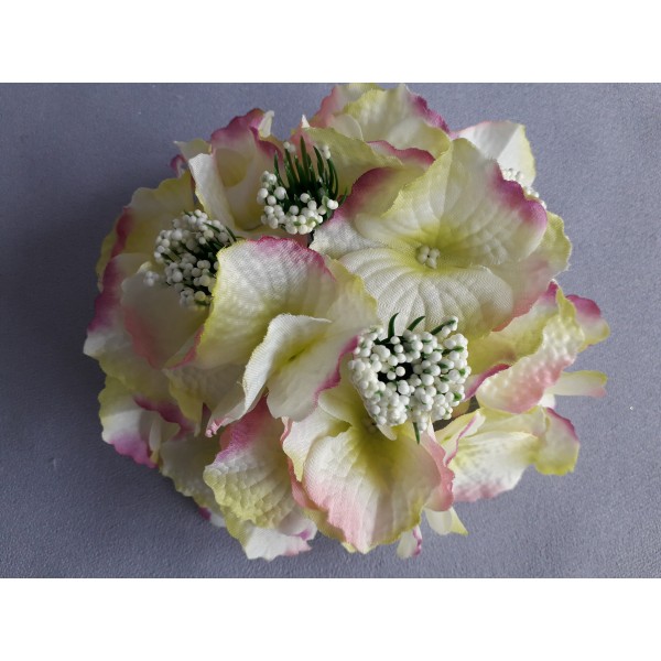 Hortenzie vazbová velká s drátkem. Květ velikost cca 17 cm, drátek délka 28 cm.