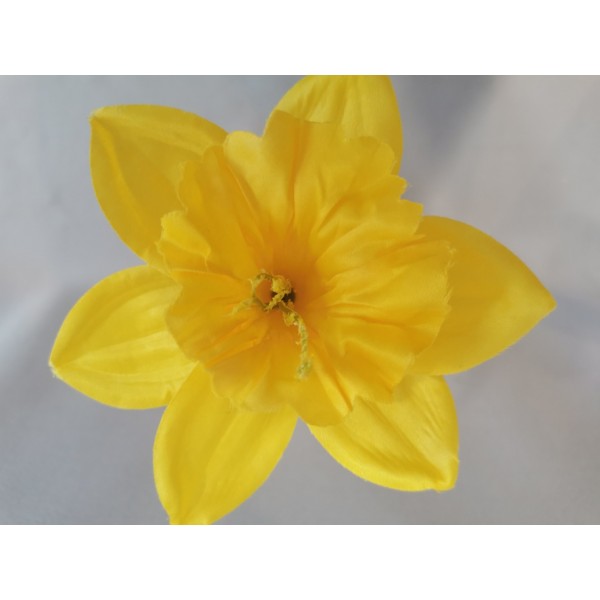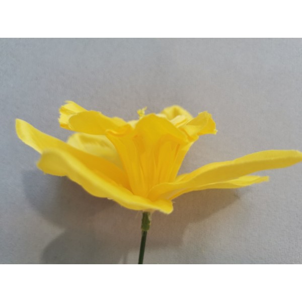 Narcis - vazbový květ s drátkem. Průměr květu je 13 cm, drátek 28 cm.