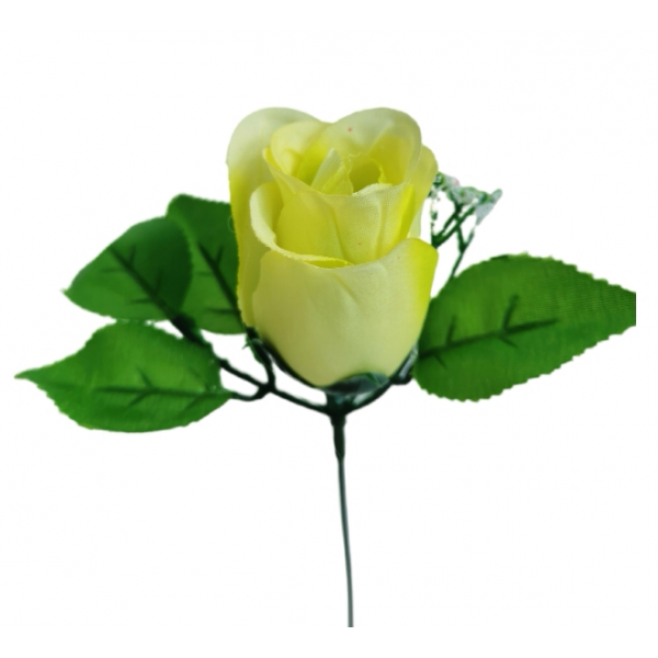 růžička poupě vazbová s lístky a gypso s drátkem(drátek 28 cm), květ - výška 7 cm.