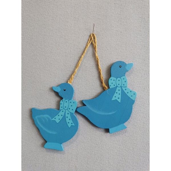 Jarní dekorace závěsná; husa dřevo; 2 ks za tuto cenu; tmavě modrá; rozměry: 8,5x8,5 cm