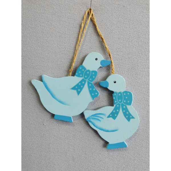 Závěsná dřevěná dekorace husa 2 ks sv. modrá 8,5 cm