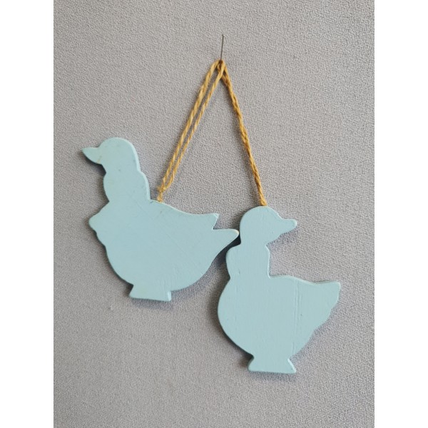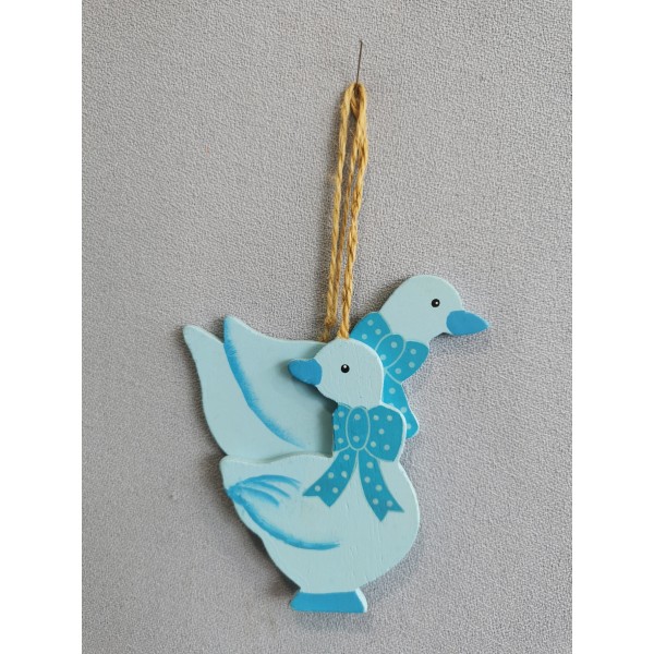 Jarní dekorace závěsná; husa dřevo; 2 ks za tuto cenu; světle modrá; rozměry: 8,5x8,5 cm