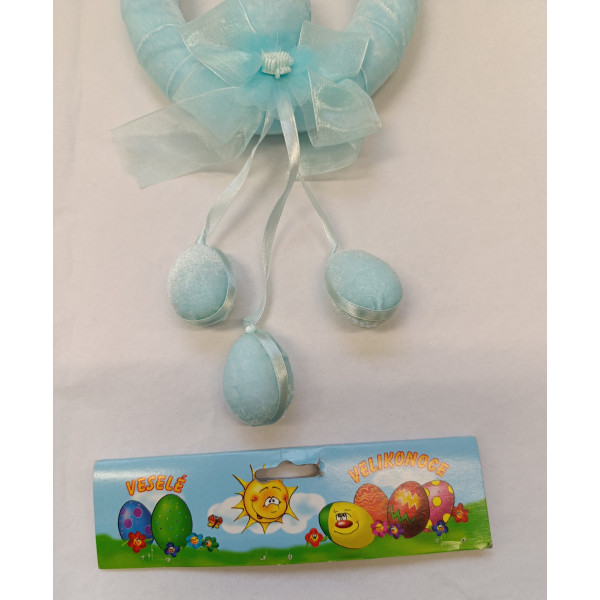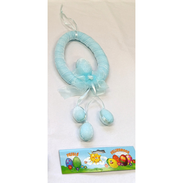 Jarní dekorace 50 cm modrá. Jemná, hebká dekorace na zavěšení. Posledních pár kousků.