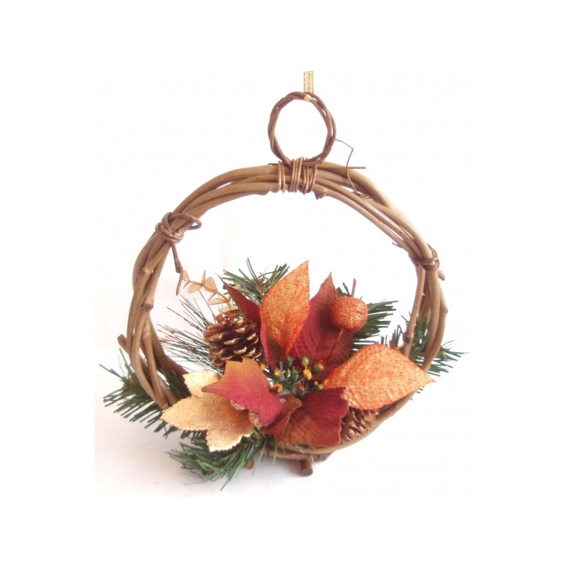 věneček závěsný zdobený hnědo-zlatou poinsettií