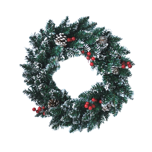 Věnec zasněžený chvojový zdobený - bobule, šišky (dle obrázku), průměr 40 cm