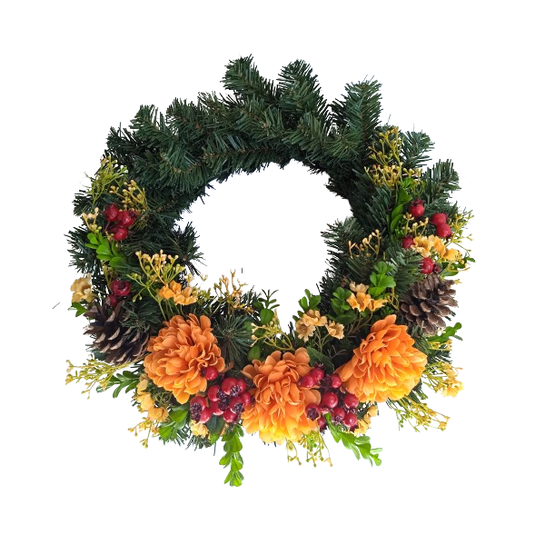 Věnec podzimní květy, šišky, šípek Ø 40 cm