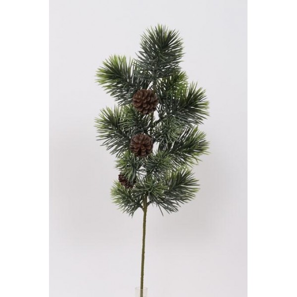 Větvička borovice se šiškami ojíněná. Materiál - vše plast. V. 61 cm.