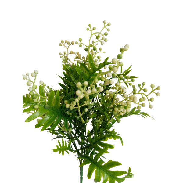 Svazek - větvička listy a bobule. Výška 36 cm, 5 stonků. Materiál plast. 4 barvy.