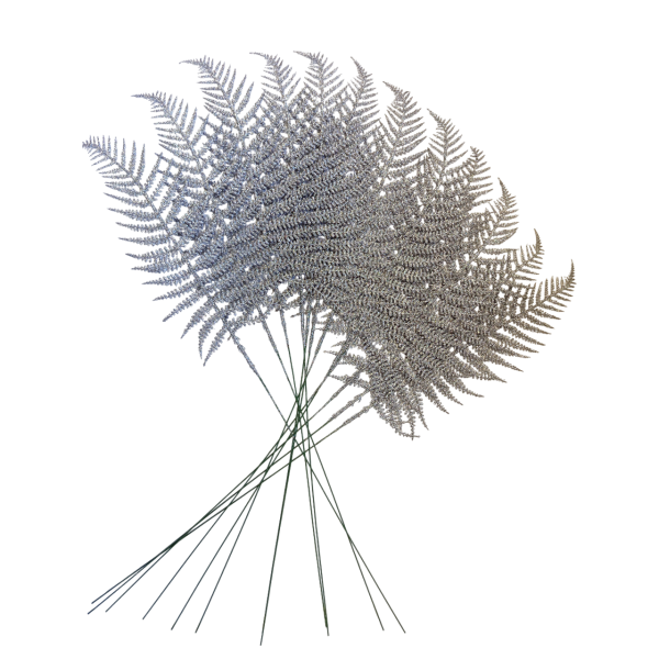 Větvička kapradí s glitry 60 cm - Sada 12 ks