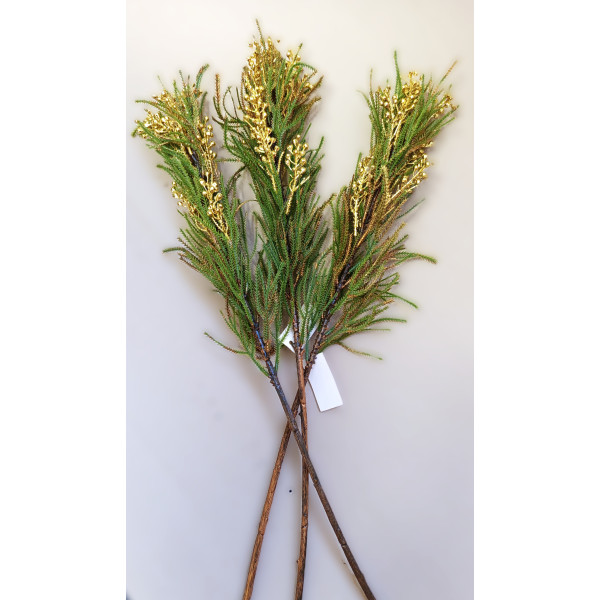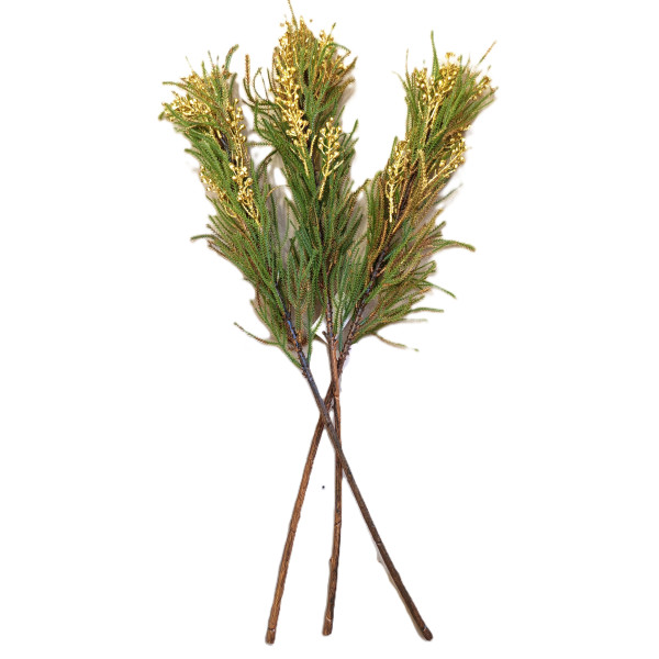 Větvička dekorační 3 ks zeleno-zlatá 61 cm