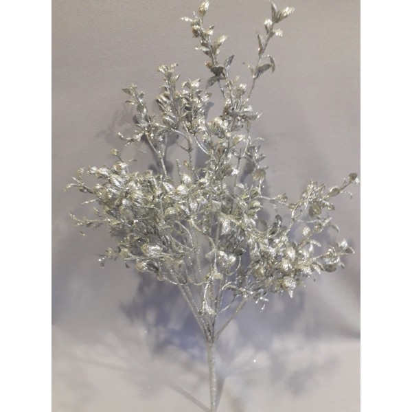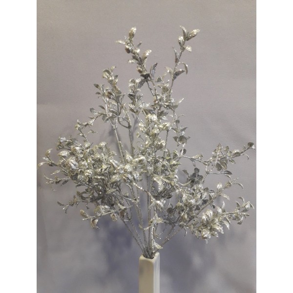 Větvička buxus stříbrná (stříbrný glitr), v. 44 cm. Pěkné provedení